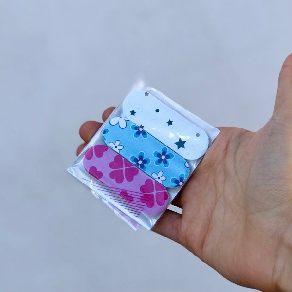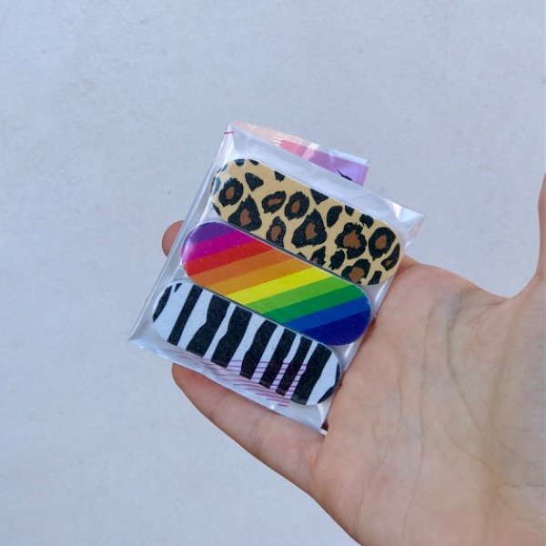 Set de 3 mini limas para uñas. Los diseños son aleatorios, pueden variar
