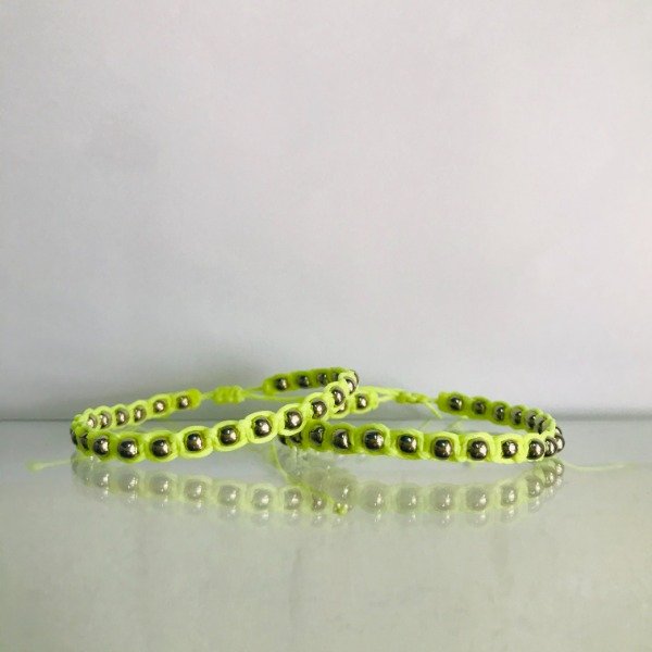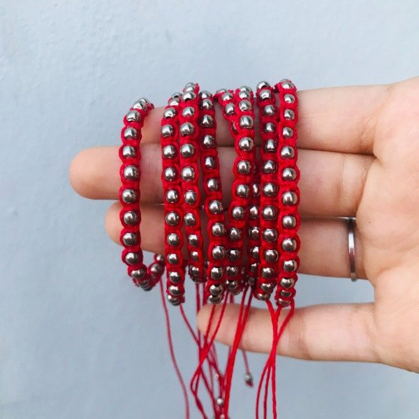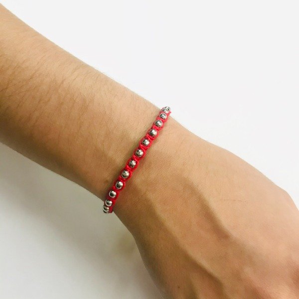 Pulsera de hilo encerado con perlitas metálicas plateadas, regulable