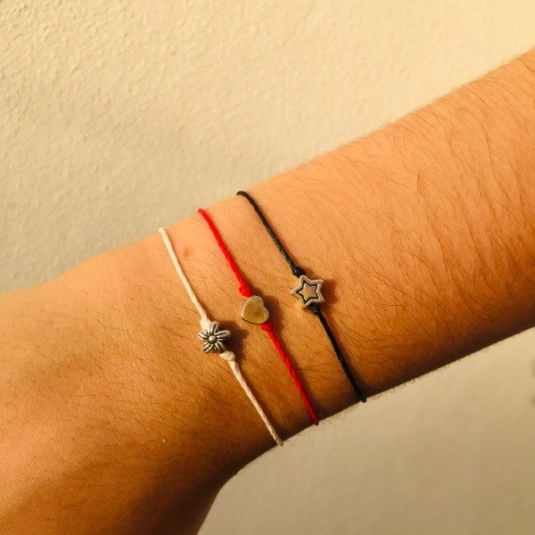 Set de 3 pulseras regulables con dijes mini. De hilo chino