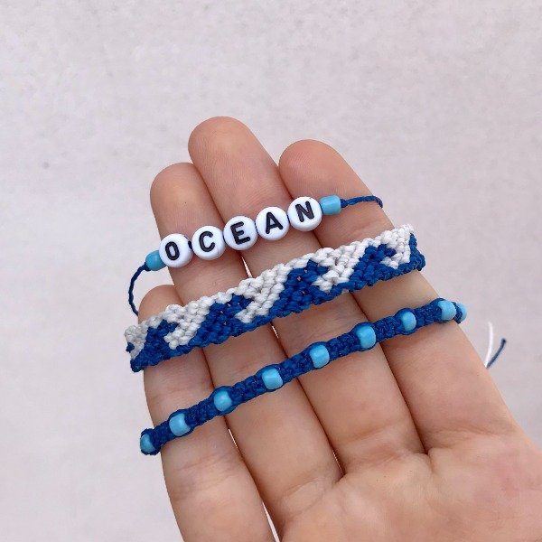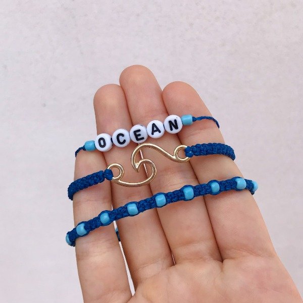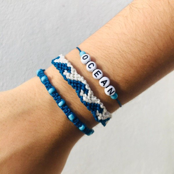 Set de 3 pulseras, seleccionar Opción 1 (olas tejida) u Opción 2 (dije ola)